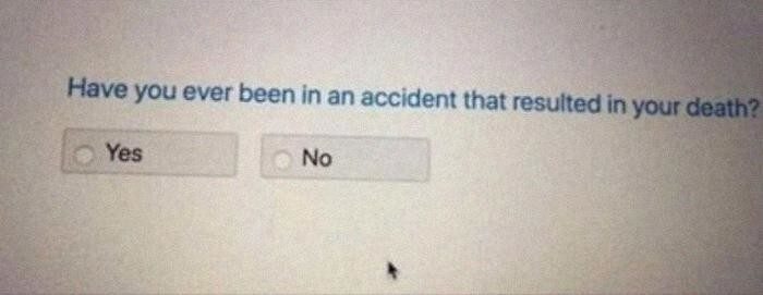 4. «С вами когда-нибудь происходил несчастный случай, который привел к вашей смерти?»