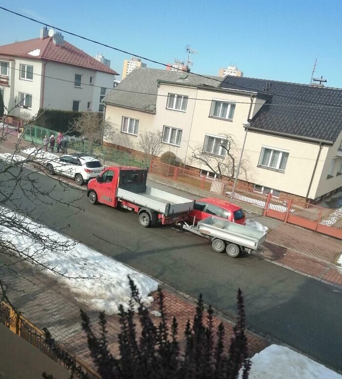 «Каждое утро тротуар перекрыт мотоциклом. На внедорожнике, который стоит слева, красуется множество пассивно-агрессивных наклеек. Похоже, эта семья гордится своей любовью к мотоспорту и не может найти место для парковки своего железного коня».