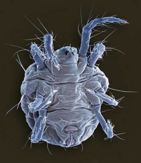 Вы удивитесь, но в вашем доме обитают миллионы пылевых клещей. Эти славные ребята питаются отмершими клетками кожи. Их можно обнаружить в мебели и коврах. Считаются безвредными созданиями, однако у людей, которые особо чувствительных к аллергенам, способны вызывать аллергическую реакцию.