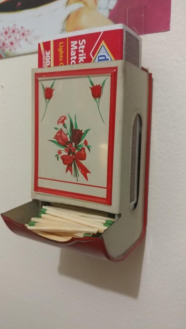 Я купил этот винтажный настенный держатель для спичечных коробков на своей любимой барахолке