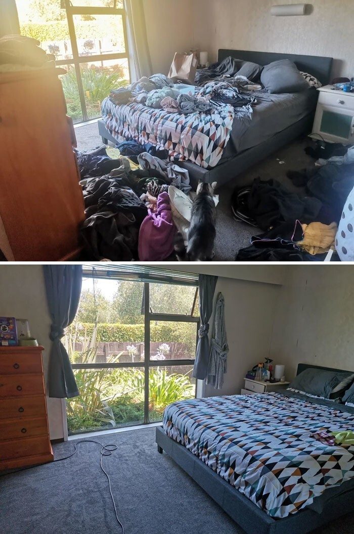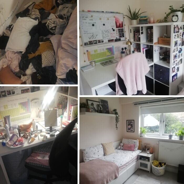 От природы в нас заложено чувство порядка, оно дарит ощущение спокойствия и комфорта. Однако людям, страдающим депрессией, бывает сложно выполнять даже самые элементарные домашние дела. Наведение порядка хотя бы в одной комнате способно придать сил и облегчить симптомы недуга. Перед вами мотивирующие фотографии «депрессивных комнат» до и после генеральной уборки.