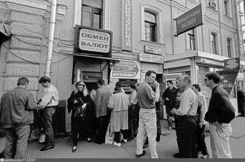 Обменник на площади у Белорусского вокзала. 1998 год