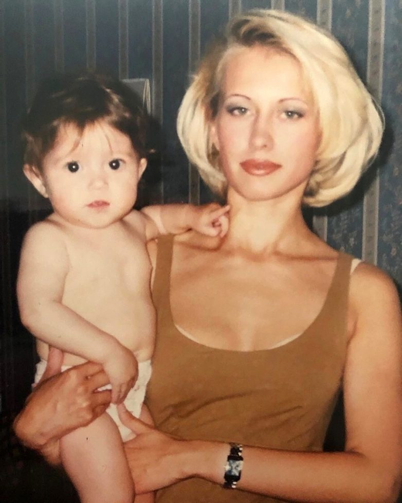 Мама и дочка с новогодней ёлкой. Москва, 25 декабря, 1997 года