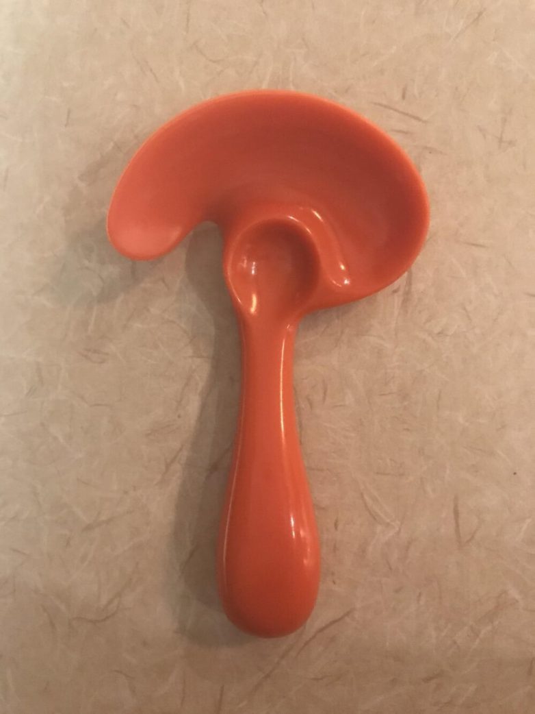 Это ложка для вырезания фигурок из тыквы. Выемка в центре предназначена для детского пальчика.