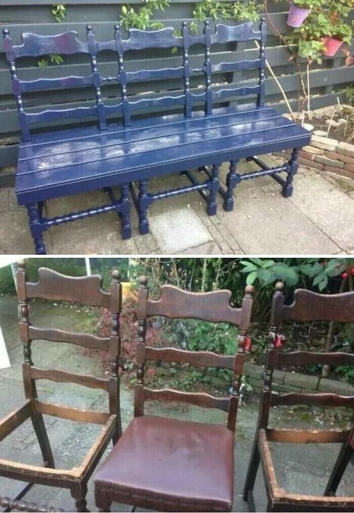 11. Душевная скамейка из старых стульев