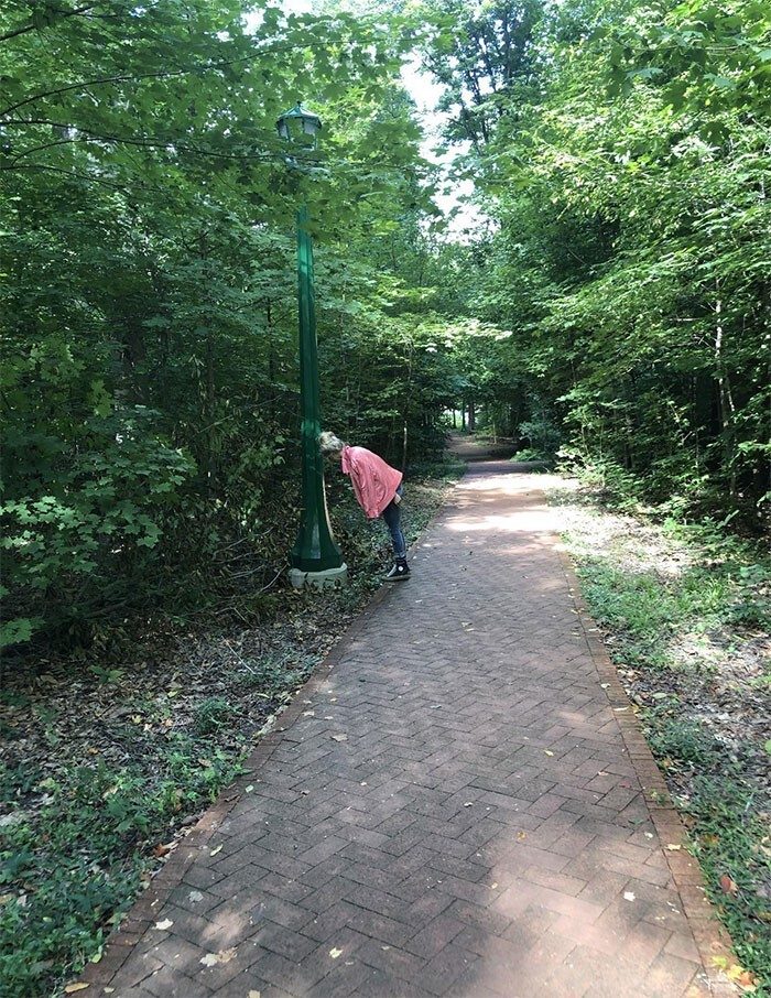 2. Сказал дочке прислониться к столбу, чтобы сделать красивое фото