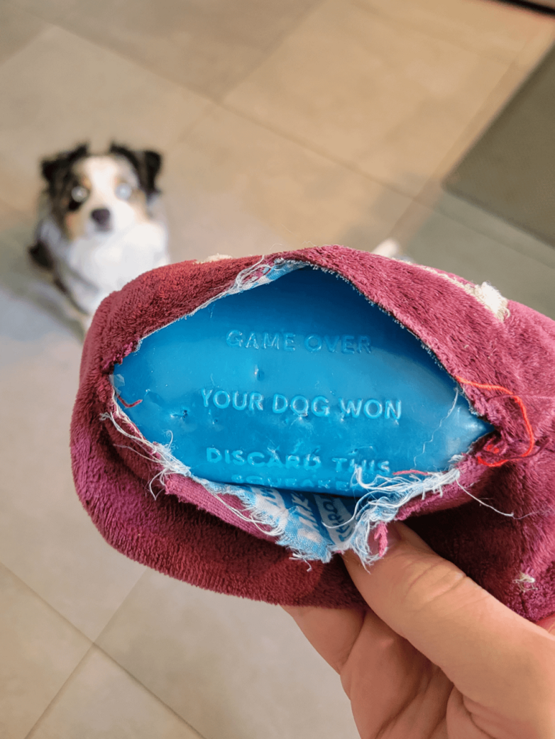 4. Надпись внутри собачьей игрушки: «Игра окончена, твоя собака победила, выброси игрушку»