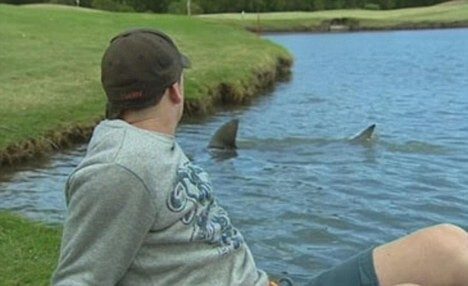 13. А эти акулы после наводнения в Австралии оказались прямо на поле для гольфа