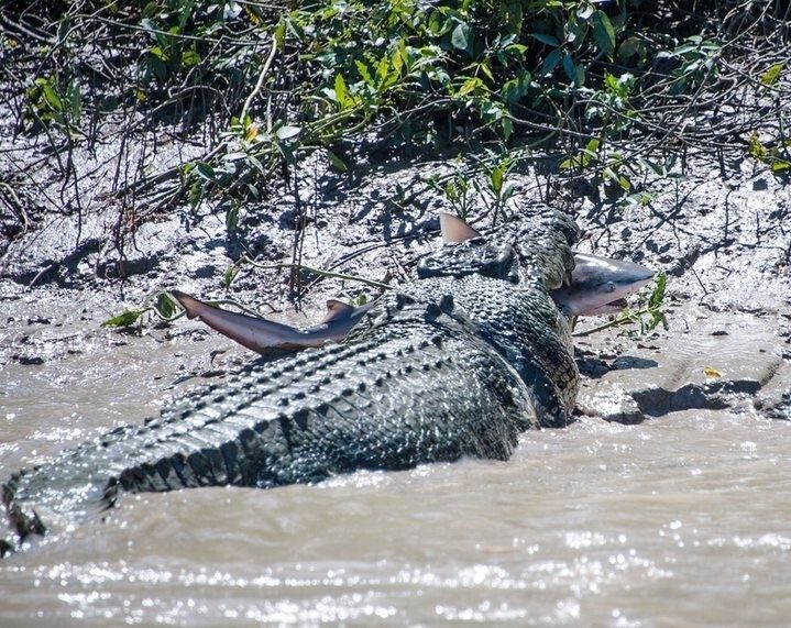 1. Крокодил по кличке Брутус пожирает бычью акулу