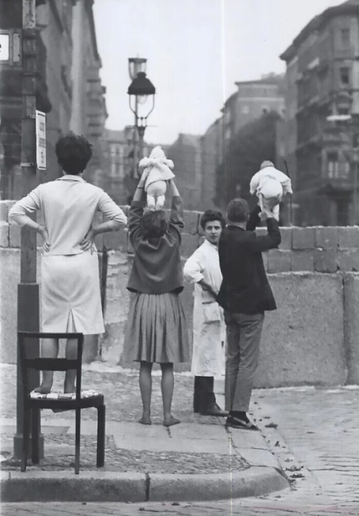 Жители Западного Берлина показывают своих детей бабушкам и дедушкам, живущим в Восточном Берлине, 1961 год