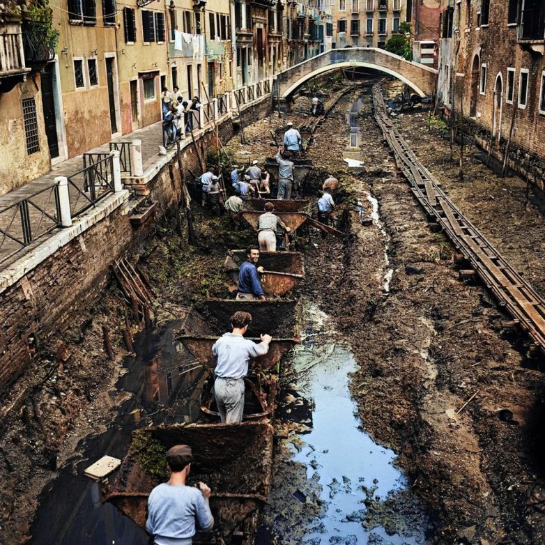 Очистка каналов Венеции от ила, 1956 год.
