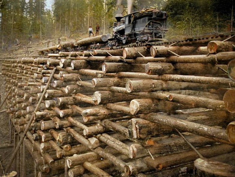 Мост-эстакада «Криб» железной дороги Columbia & Nehalem Valley на ручье Макбрайд. Округ Колумбия, штат Орегон, США, 1905 год.