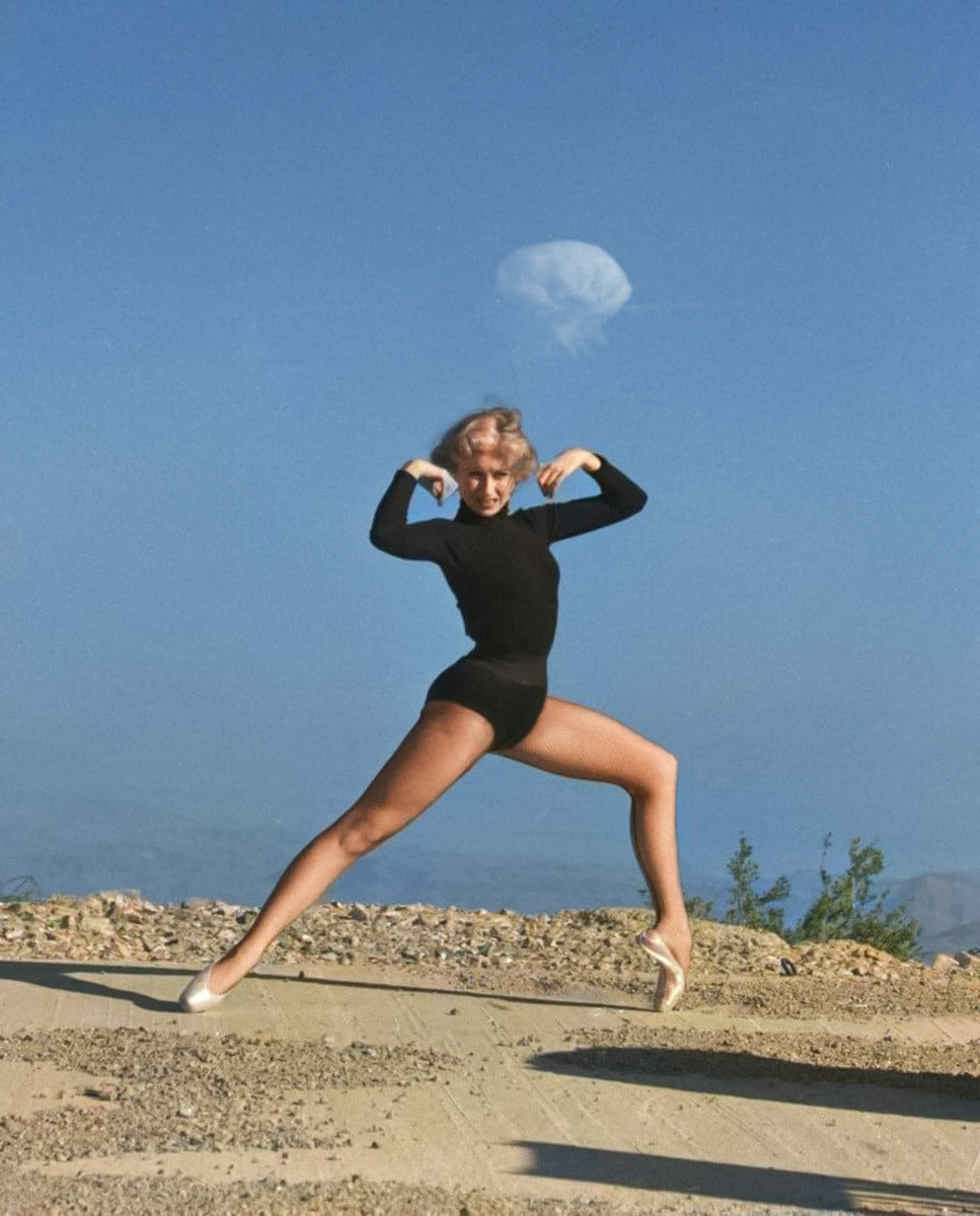 Танцовщица на фоне ядерного взрыва. США, Невада, 1950-е.В то время о вреде атома никто не знал. Рестораны открывали с видом на ядерные взрывы. Изотопы в магазинах продавали, как игрушки.
