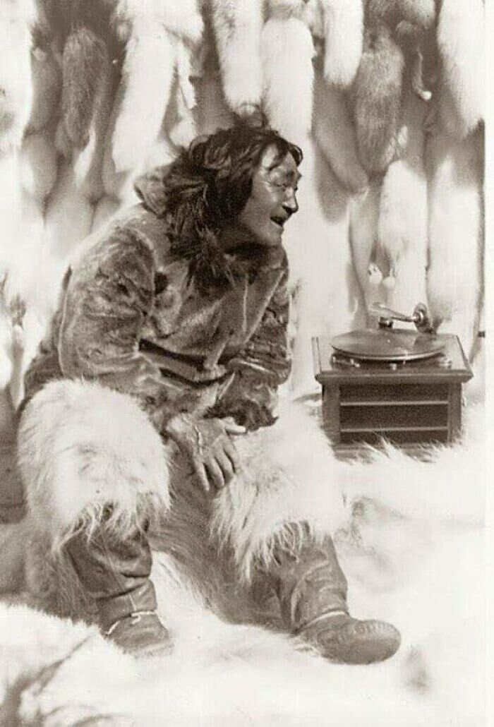 Эскимос слушает музыку на проигрывателе, 1922 год