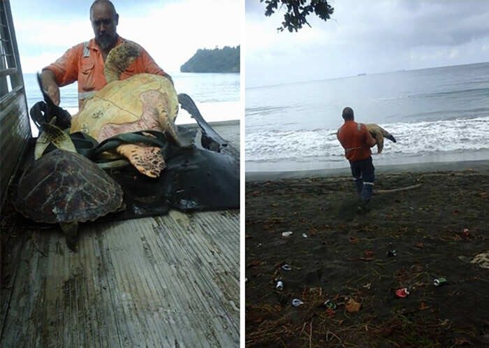 3. Этот человек покупает черепах на продовольственном рынке и выпускает их в море
