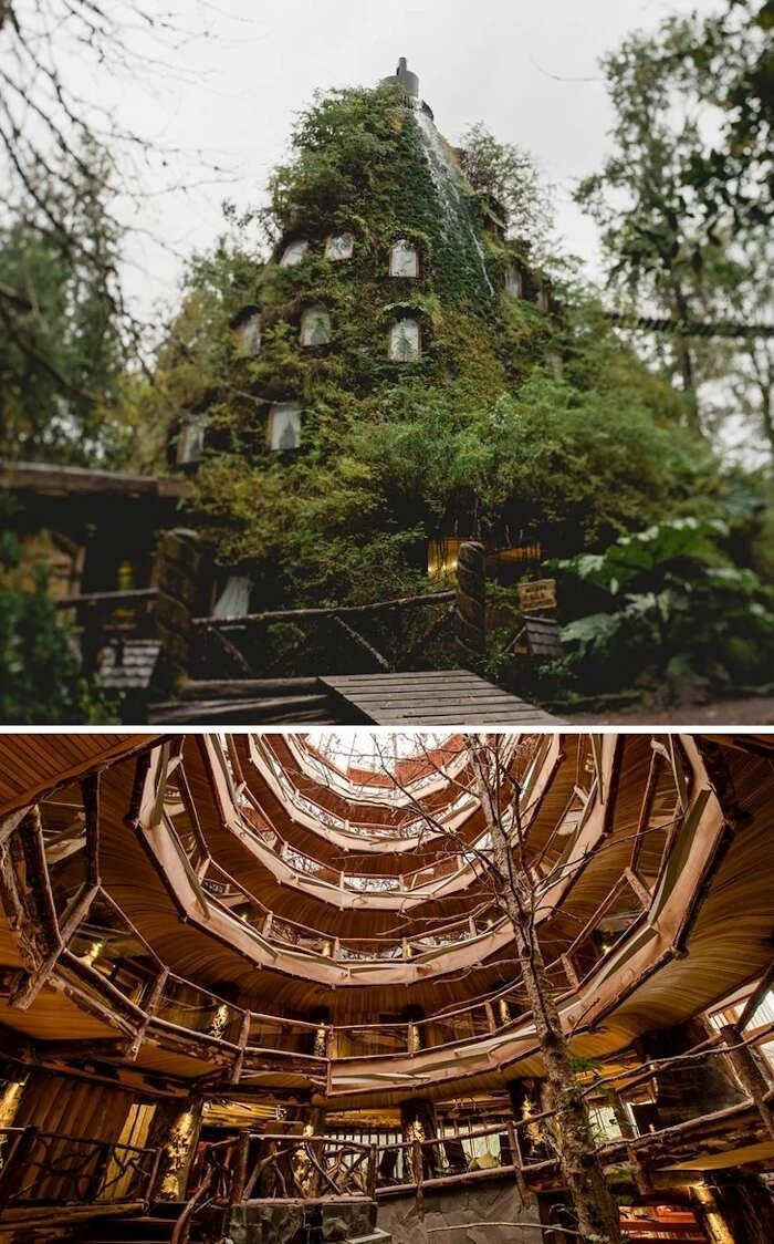 Отель в Чили — это волшебный эко — отель с водой, которая льётся сверху.