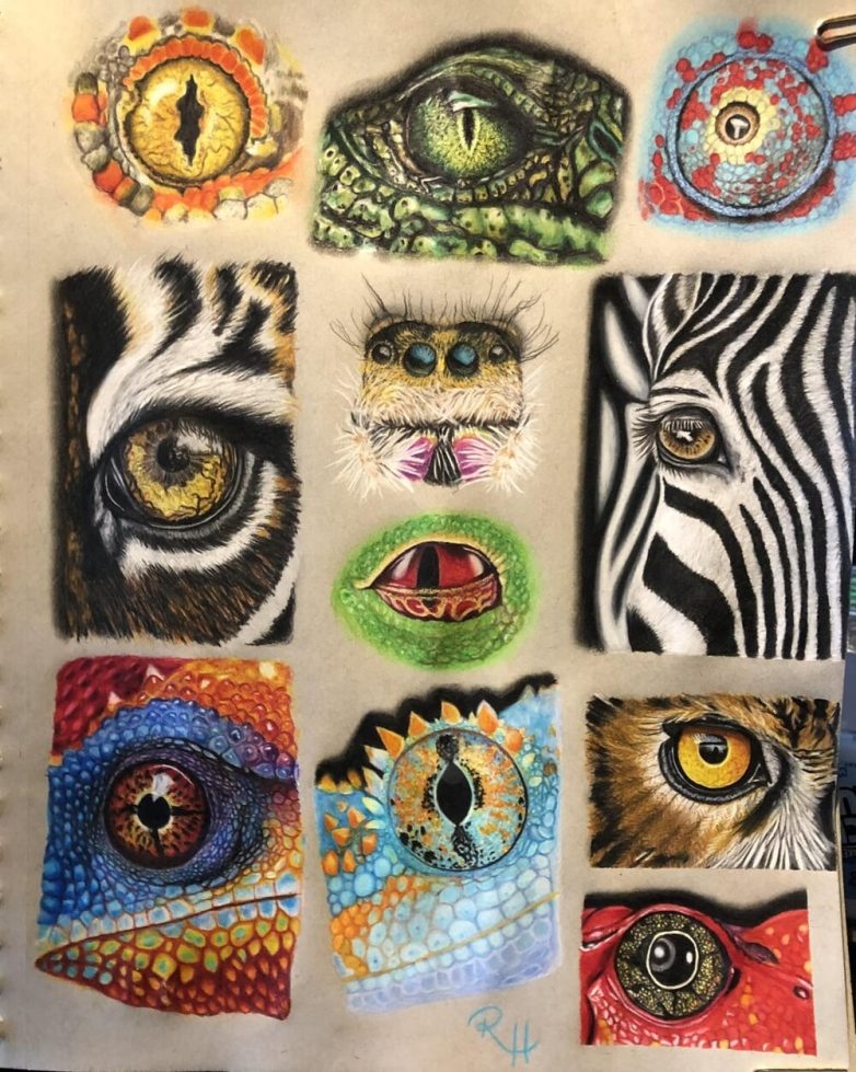 9. Рисунки глаз цветными карандашами