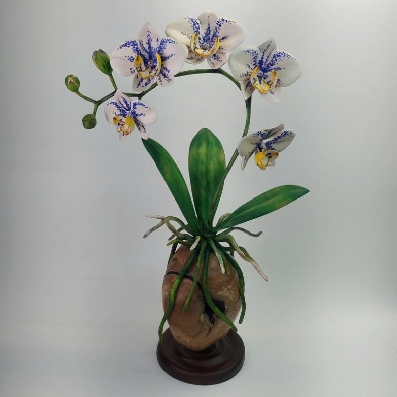 4. Я вырезал этот цветок орхидеи из липы и клена! Он сделан из многих частей, все соединено булавками, а краска для дерева на водной основе