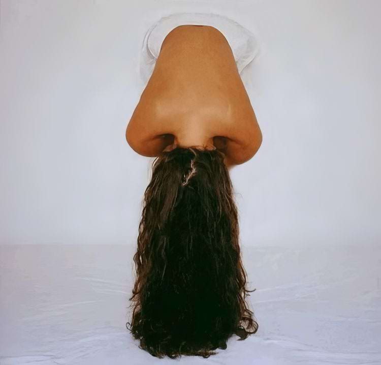 Для тех, у кого не получается понять, что происходит на этом фото — это наклонившаяся женщина с опущенной вниз головой