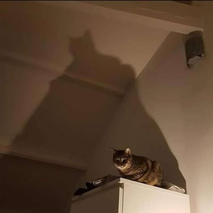 За эту иллюзию стоит сказать спасибо котику, сидящему за окном и отражению неба в стекле того же окна. Всё это соединилось воедино, чтобы получилась иллюзия, напоминающая сцену из мультфильма «Король лев»