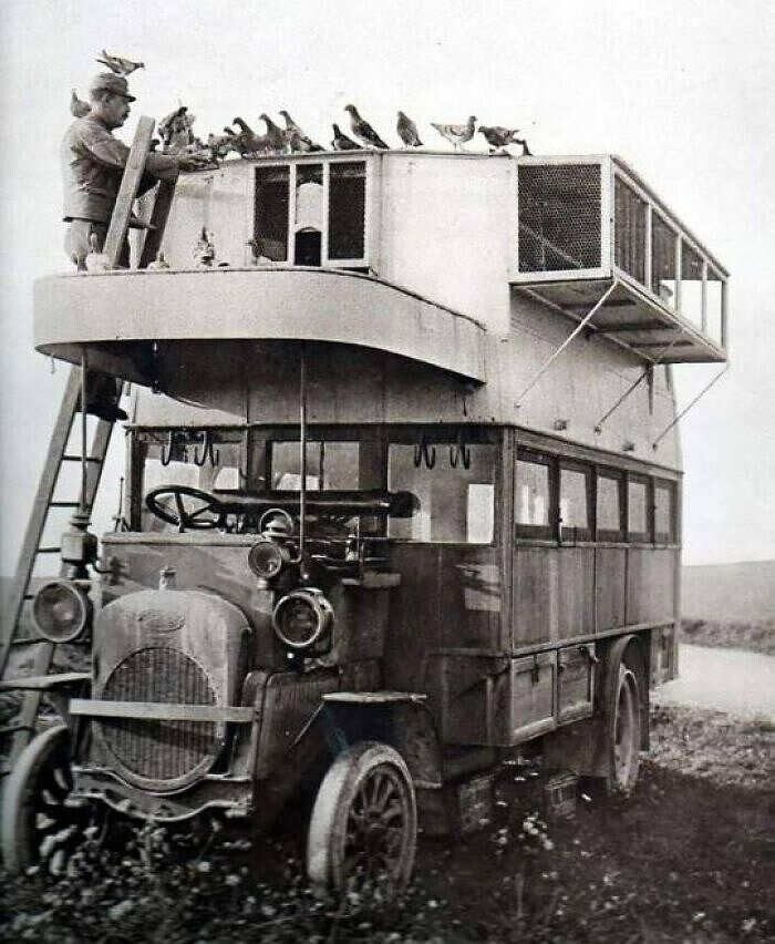 «Голубиный автобус» времен Первой мировой войны, служивший местом сбора голубей-посыльных с линии фронта