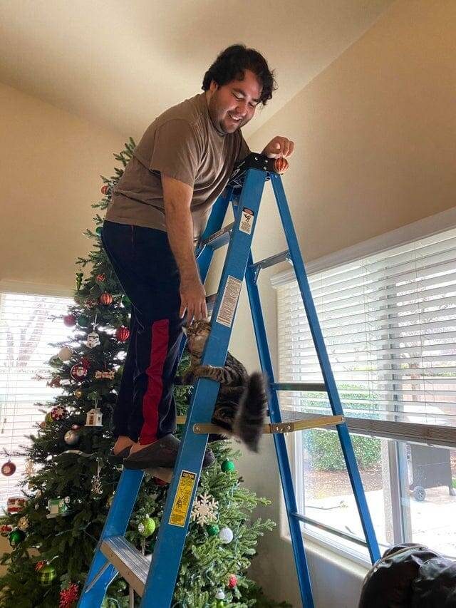 6. Кошка залезла на ёлку, свалилась с неё и упала прямо в подарочный пакет