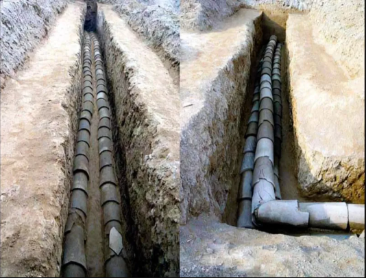 22. Керамические водопроводные трубы, найденные возле дворца Эпанг, Китай, 5-3 век до н. э.