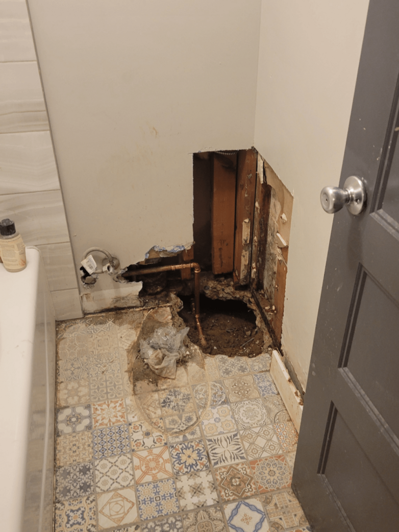 16. Вернувшись домой, мы увидели это в нашей ванной комнате. Компания по недвижимости не предупредила нас о том, что ведутся ремонтные работы