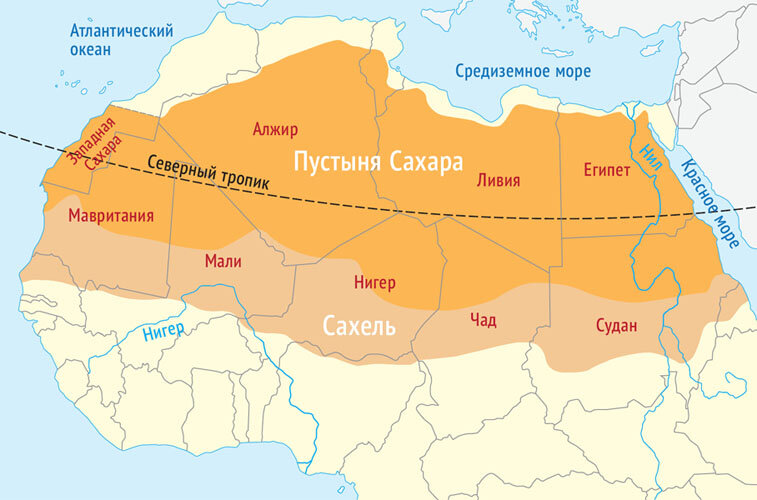 Площадь Сахары 9,2 млн км². Насколько это много? Вся площадь Африки, на которой находится пустыня, это 30 370 000 км².