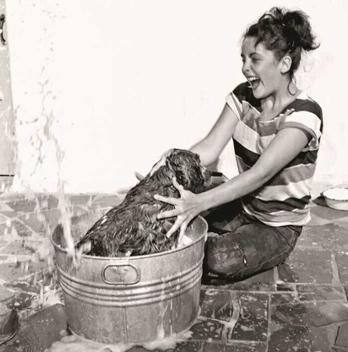 Элизабет Тейлор купает своего четырехногого друга