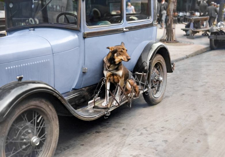 Необычный способ перевозки собаки. Париж, 1920-е.