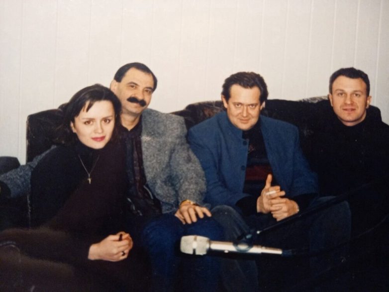 Федор Бондарчук, Оксана Пушкина и тогда ещё супруги Кристина Орбакайте и Владимир Пресняков отдыхают в ресторане, 1991 год