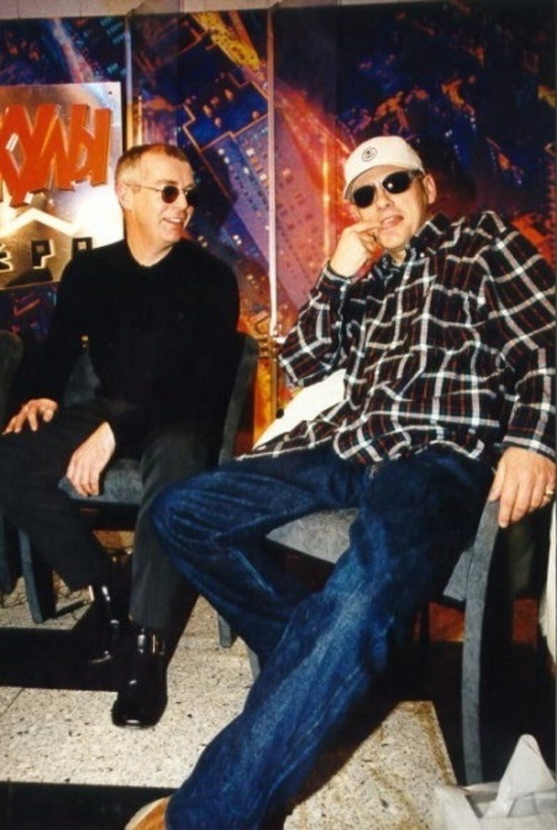 Участники группы «Pet Shop Boys» на съёмках передачи «Акулы пера» в Москве. 27 февраля 1998 года.