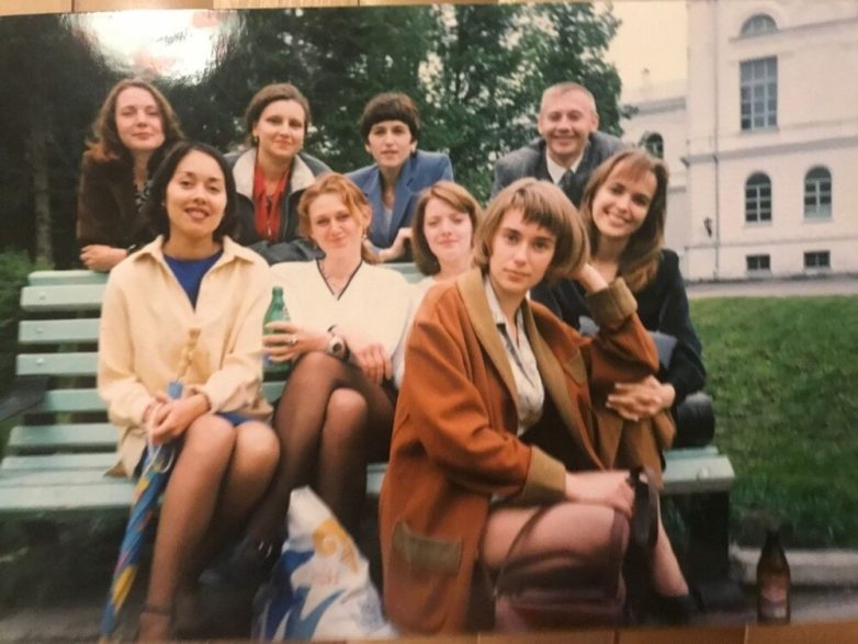 Она встретилась с учащимися одной из московских школ с углубленным изучением французского языка в Москве, 1994 год.