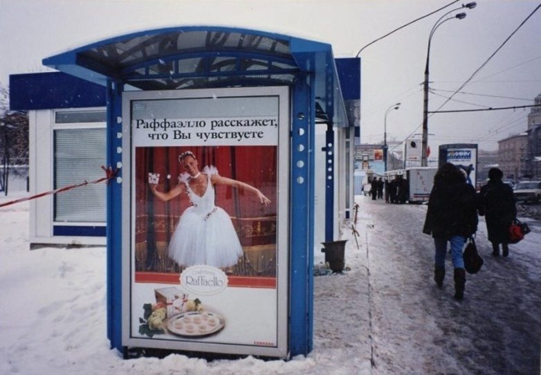 Реклама конфет «Рафаэлло» на остановочном комплексе