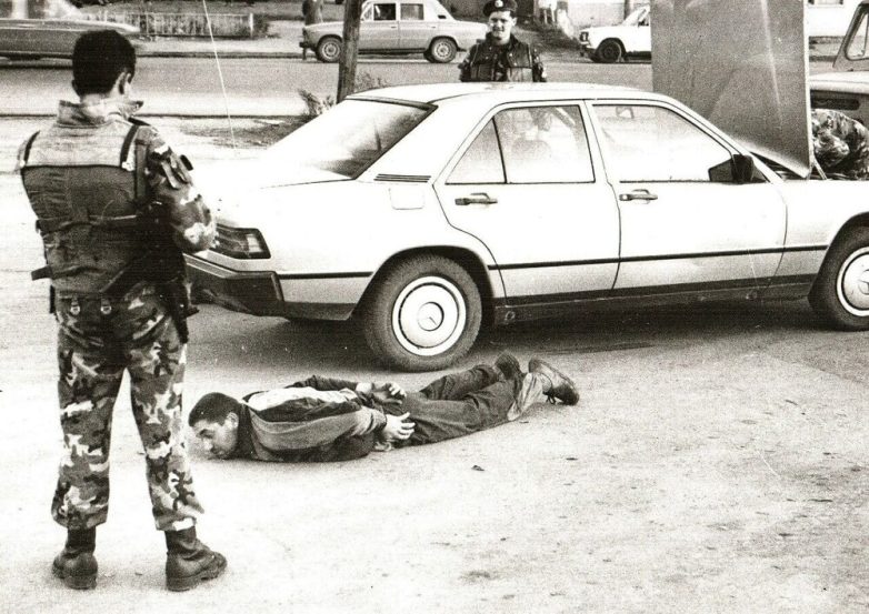 Бойцы ОМОНа во время задержания банды рэкетиров, собиравших дань с автозаправок. Саратов, 1993 год.