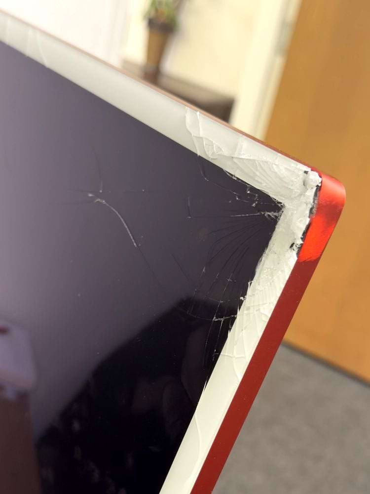 Мама (автор фото) написала, на фото можно видеть результат того, что её трехлетний ребенок бросил игрушечную машинку в экран телевизора
