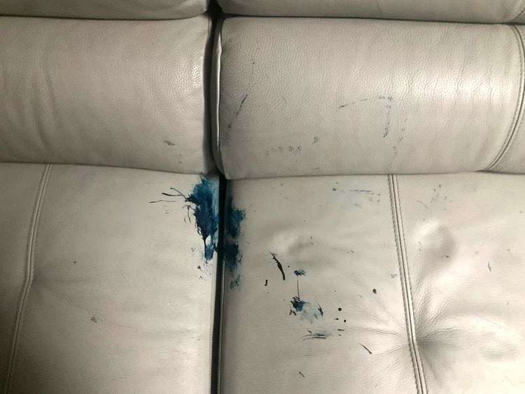 А может автор фото просто пытается скинуть вину на милых пёсиков? Как бы то ни было желаем удачи в выведении чернил с кожаного дивана