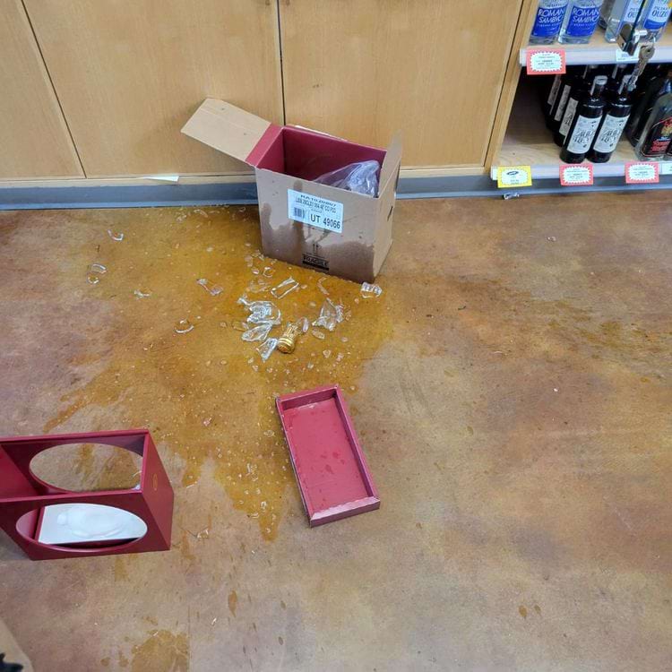 «Я открывал коробку, чтобы выставить ее на полку в закрытом футляре. Когда я это делал, футляр немного наклонился, и бутылка выпала. Я обильно потел примерно 30 минут. К счастью, мне удалось сохранить свою работу. Мой босс согласился, что упаковка глупая», — написал автор фото