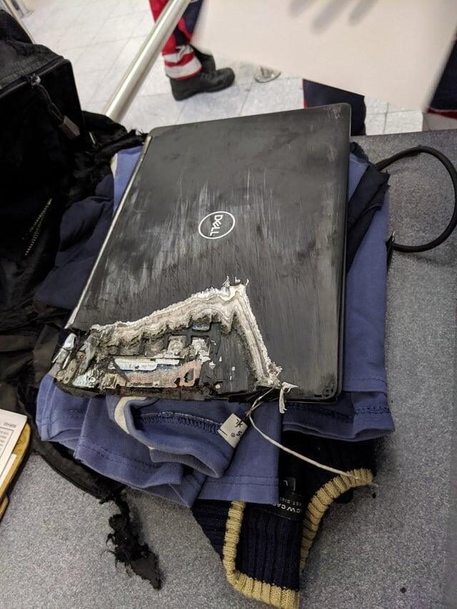 Ноутбук попал под багажную тележку в аэропорту