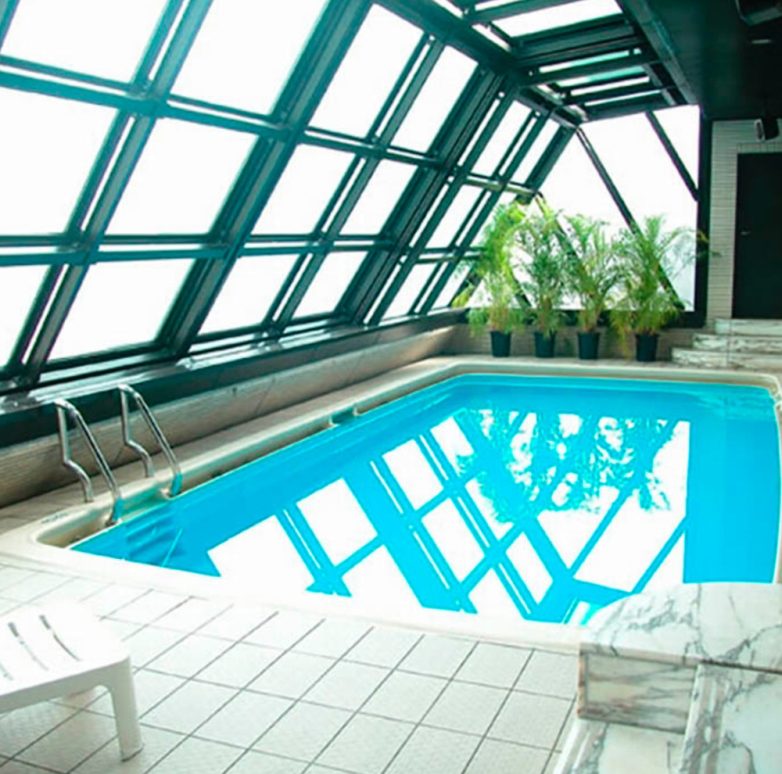 Либо окно лишнее, либо выход из бассейна должен был быть в другом месте