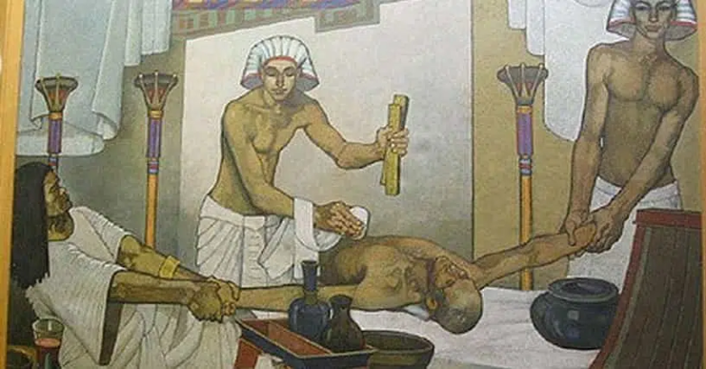 Древние египтяне использовали влажную глину для лечения переломов костей. Этот метод считается одним из первых известных примеров ортопедической техники — за тысячи лет до современных гипсовых повязок.