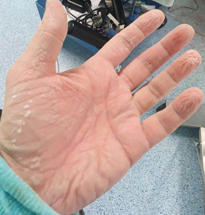 10. Ладонь доктора, который проводил операцию в перчатках в течение 2 часов