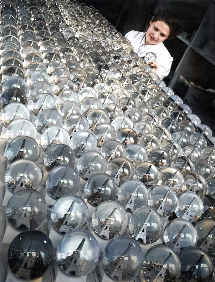Стеклянные шары с Эйфелевой башней. Париж, 1949 год.
