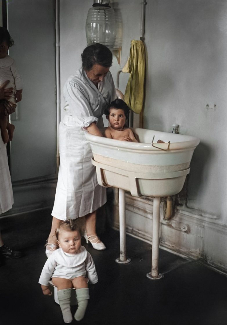 Няня купает ребенка в детском саду универмага Les Galeries Lafayette. Париж, 1929 год.