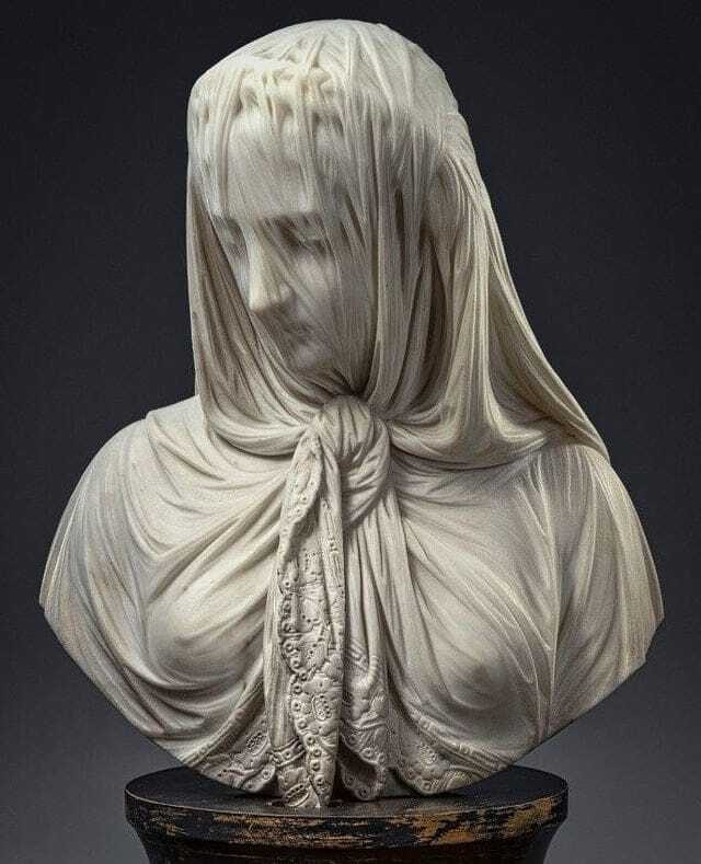 Подобная реализация складок вуали поверх лица на скульптуре — настоящее искусство.