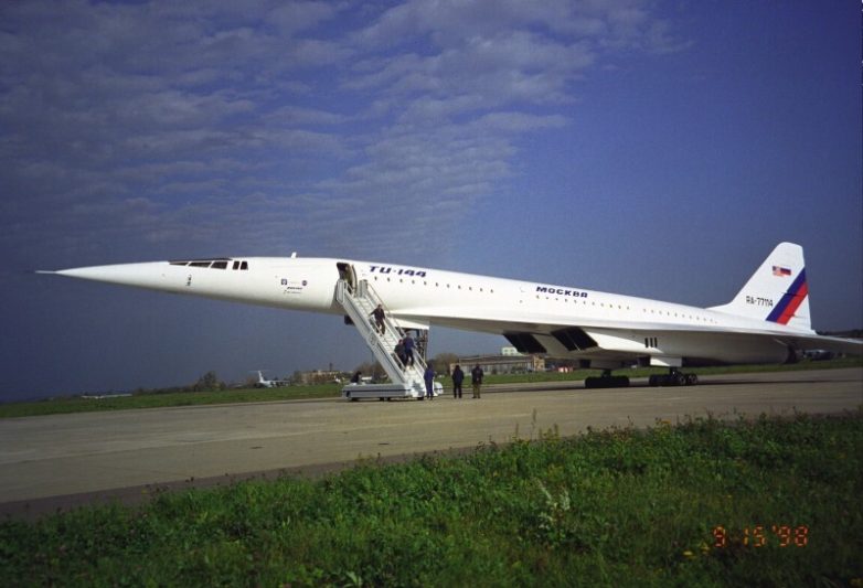 Американские летчики-испытатели, Гордон Фуллертон и Роберт А. Риверс после полёта на Ту-144. Жуковский, Россия, 1998 г
