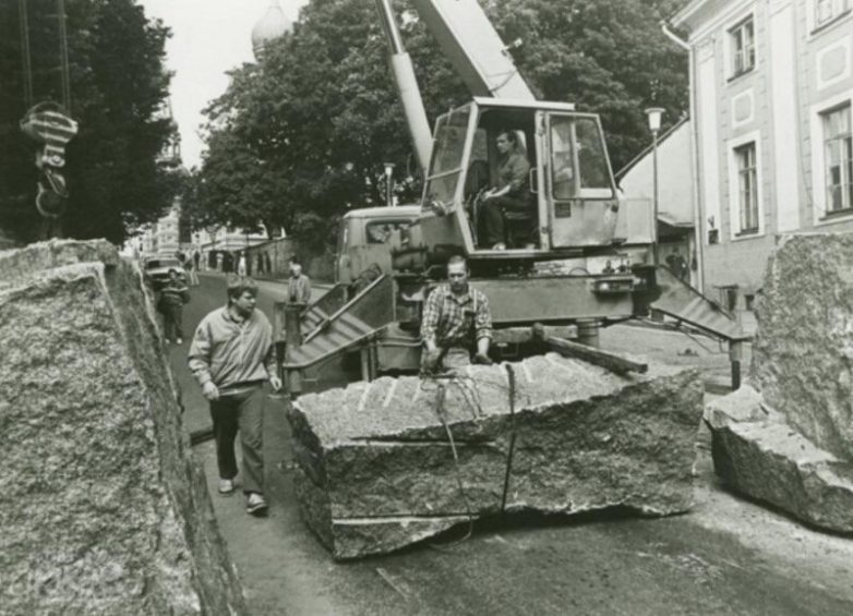 Эстонцы возводят баррикады для защиты Тоомпеа от советских войск 21 августа 1991 г