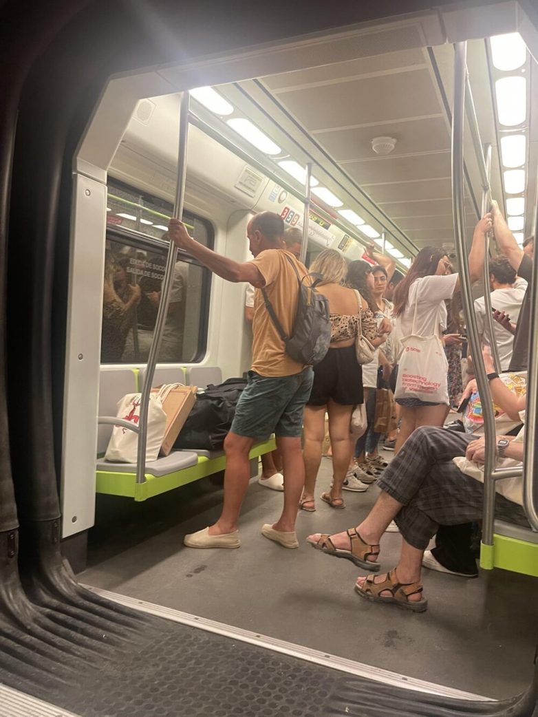 28. Мужчина в метро Валенсии занял ряд сидений своими сумками