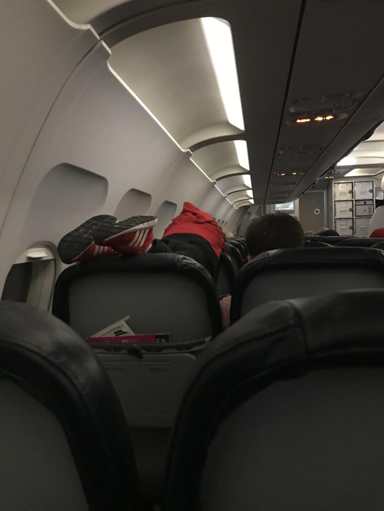 27. Ребёнок бегал по проходу и использовал сиденья в качестве тренажёров